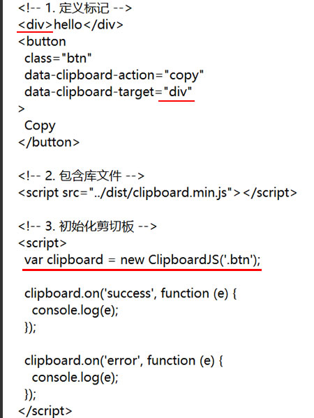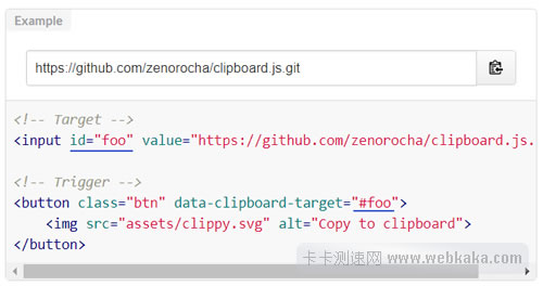 事實是,你甚至不需要另一個元素來復制其內(nèi)容。你可以在觸發(fā)器元素中包含一個data-clipboard-text屬性。