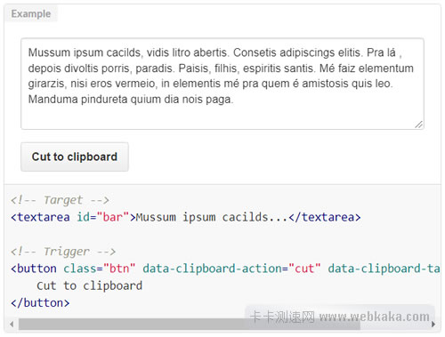 此外,你可以定義一個data-clipboard-action屬性來指定是否要copy或cut內(nèi)容。