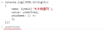 3、所有Symbol帶鍵的屬性都將被完全忽略,即使在使用replacer函數(shù)時也是如此。