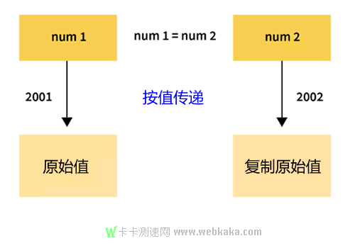 當我們?yōu)樽兞糠峙湓贾禃r,= 運算符會在內(nèi)存中(例如在地址2001處)設置一個空間(位置/地址),以將該變量(num1)的數(shù)據(jù)存儲到該地址。當我們創(chuàng)建一個新變量num2(比如地址2002)并為其分配前一個變量num1的值時,= 運算符在內(nèi)存中創(chuàng)建新空間,它獨立于地址為2001的前一個變量num1。因此,這復制了原始變量num1的值到內(nèi)存中的兩個單獨的位置(地址為2001和2002)。