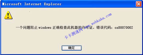 安裝完畢后,我意想不到的事情發生了,系統不讓登陸了!彈出窗口提示“一個問題阻止windows正確檢查此機器的許可證,錯誤代碼ox80070002”,微軟認為我用的是非正版xp,所以不讓用了。