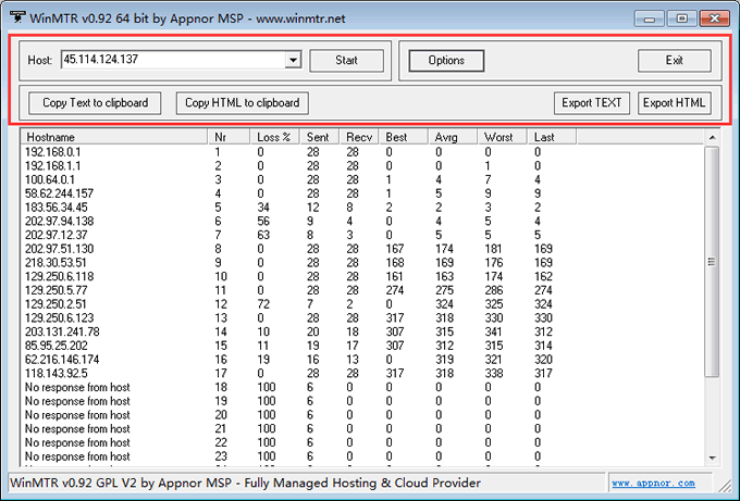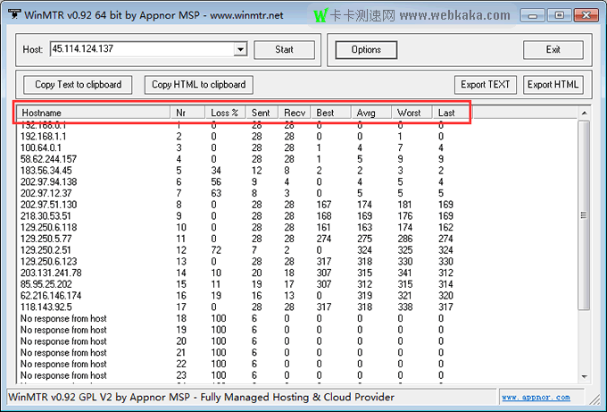 WinMTR測試結(jié)果解釋