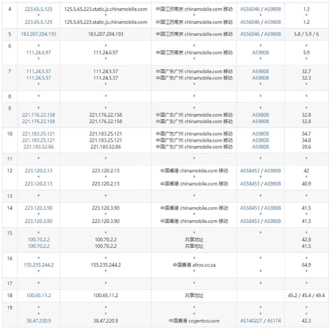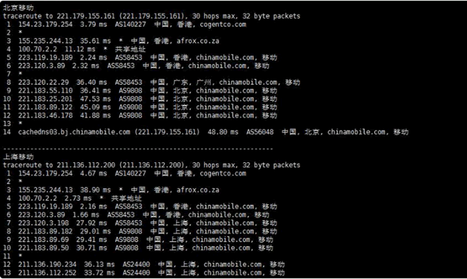移動回程路由是直連國內網絡,走的是CMI線路。