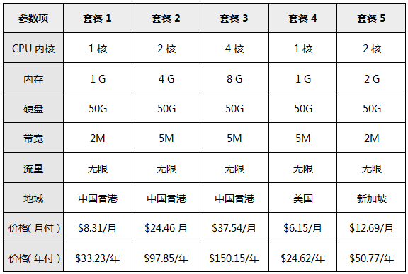 以下是幾款比較熱門的配置,默認CN2帶寬,均支持Linux和Windows操作系統,更多配置可到官網了解。