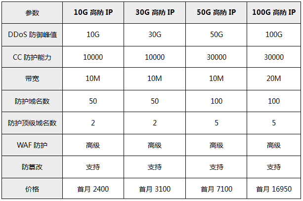 下面來看一下華納云香港高防IP套餐介紹: