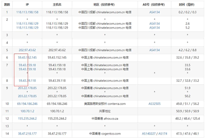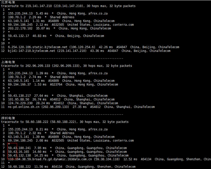 我們下面來看看香港服務器三網去程和回程路由情況。