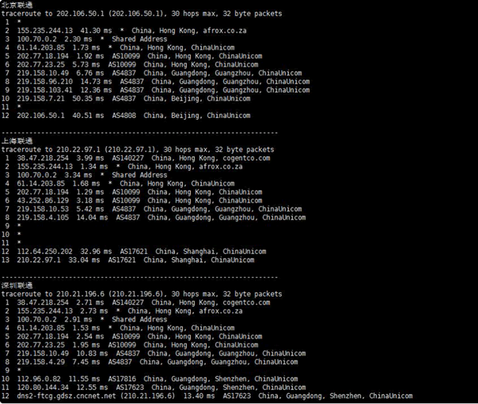 聯通回程路由從廣州網口進入,走AS4837線路。