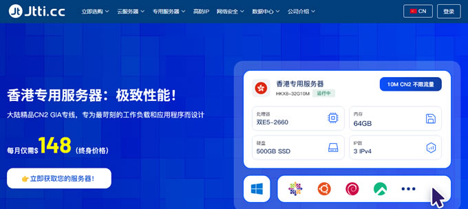 Jtti.cc推送了8月份的最新活動,香港節點的云服務器和獨服促銷,香港云服務器目前有3折優惠,最低配置月付$2.77起,香港CN2服務器限時特價$148/月,為終身循環折扣,CN2三線直連+海外多運營商網絡,延遲30-60ms,游戲聯機、跨境電商、視頻直播、站群部署一站式搞定。