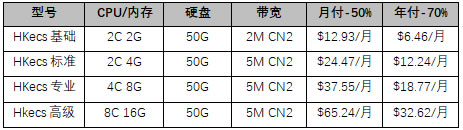 香港云服務器促銷套餐